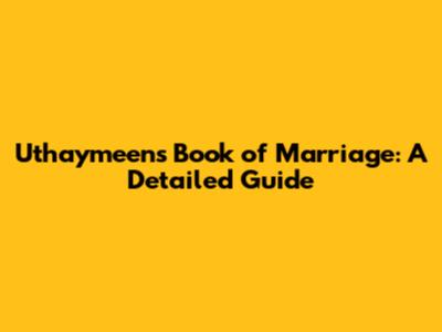 Uthaymeen's Book Of Marriage: A Detailed Guide