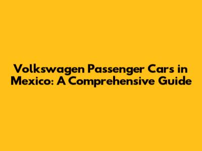 Volkswagen Passenger Cars In Mexico: A Comprehensive Guide