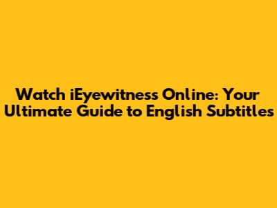 Hey everyone! Are you searching for where to watch iEyewitness online with English subtitles? You've landed in the right place, my friends. This is your go-to guide for everything related to streaming this awesome show. We'll dive into where you can find it, how to watch it, and what makes iEyewitness so captivating. So, grab your snacks, settle in, and let's get started. Finding your favorite shows with English subtitles shouldn't be a hassle. We will provide all the information to enjoy iEyewitness with ease. Are you ready?
