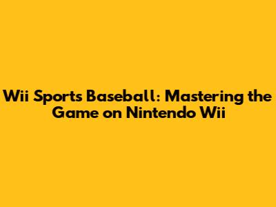 Wii Sports Baseball: Mastering The Game On Nintendo Wii