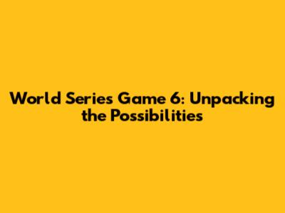 World Series Game 6? What You Need To Know
