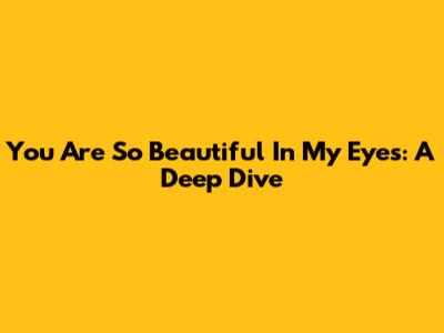 You Are So Beautiful In My Eyes: A Deep Dive